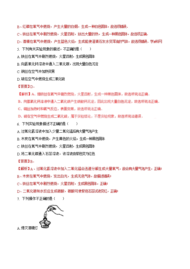 2019年九年级化学中考考点突破考点07 氧气的化学性质(解析版)