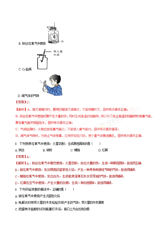 【内容简介】2019年九年级化学中考考点突破考点07 氧气的化学性质(解析版)