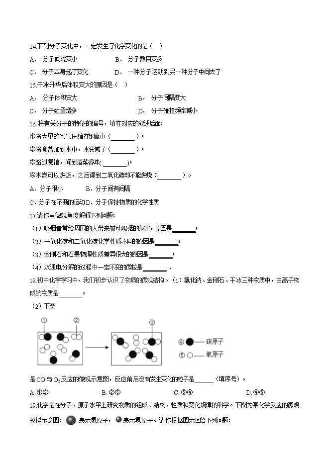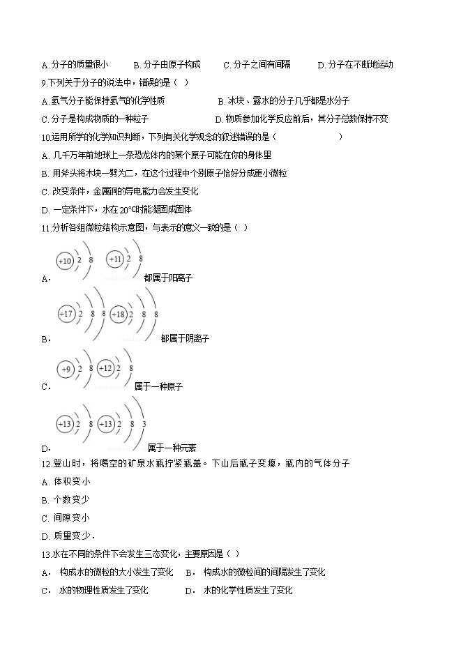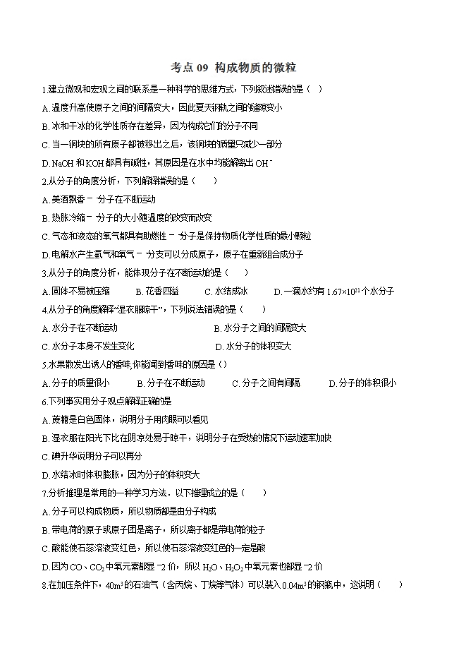 【内容简介】2019年九年级化学中考考点突破考点09 构成物质的微粒(原卷版)