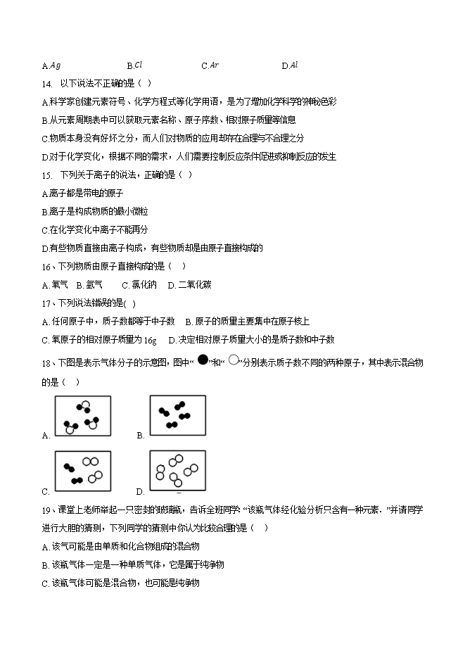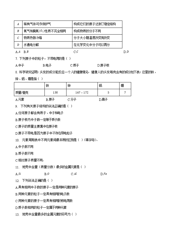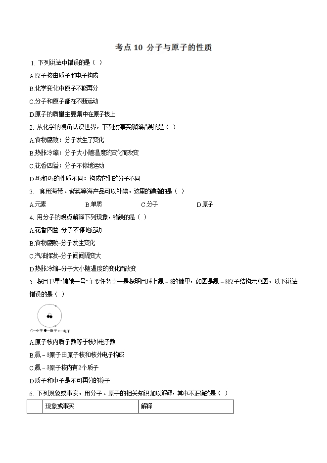 【内容简介】2019年九年级化学中考考点突破考点10 分子与原子的性质(原卷版)
