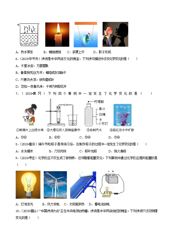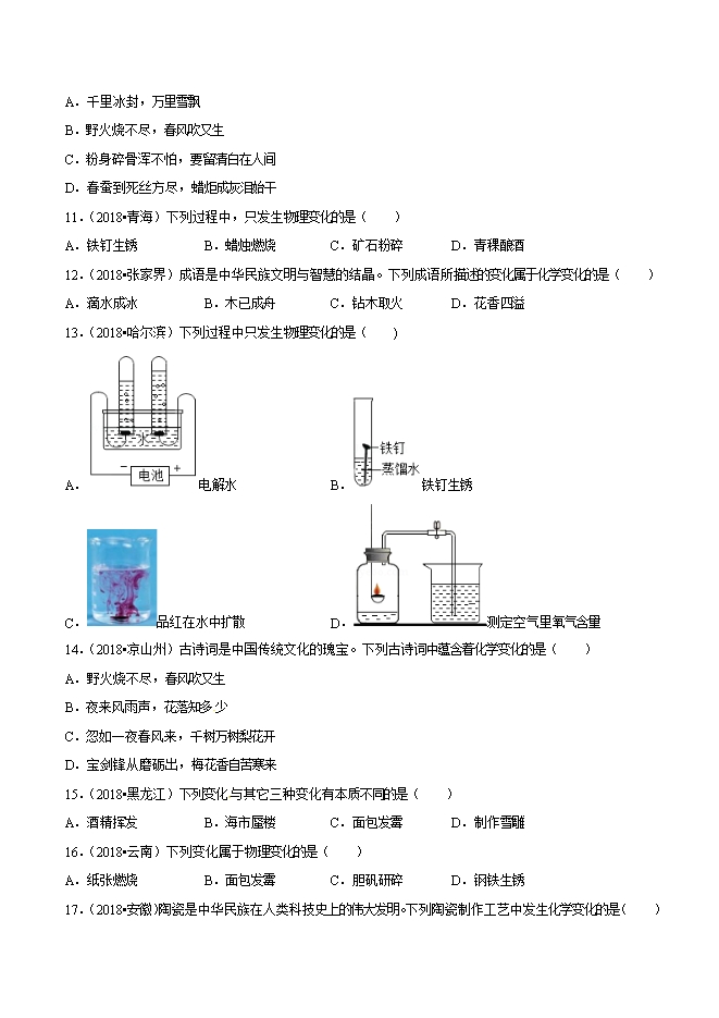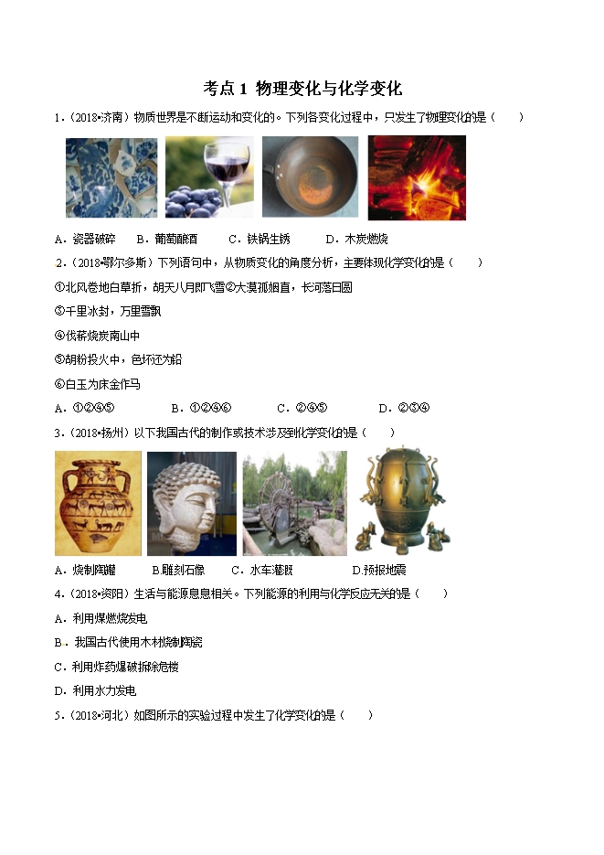 【内容简介】2019年中考九年级化学必刷题考点01 物理变化与化学变化(原卷版)