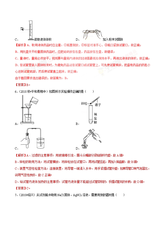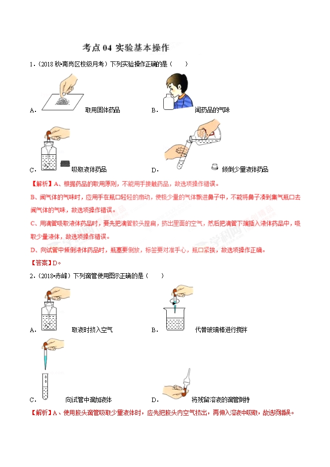 【内容简介】2019年中考九年级化学必刷题考点04 实验基本操作(解析版)