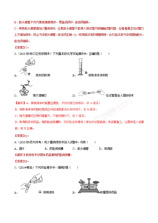 2019年中考九年级化学必刷题考点04 实验基本操作(解析版)