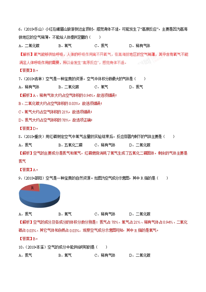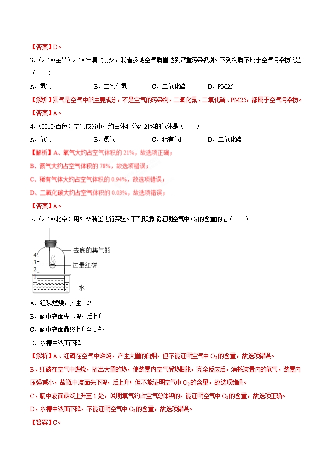 2019年中考九年级化学必刷题考点05 空气的组成和成分探究(解析版)