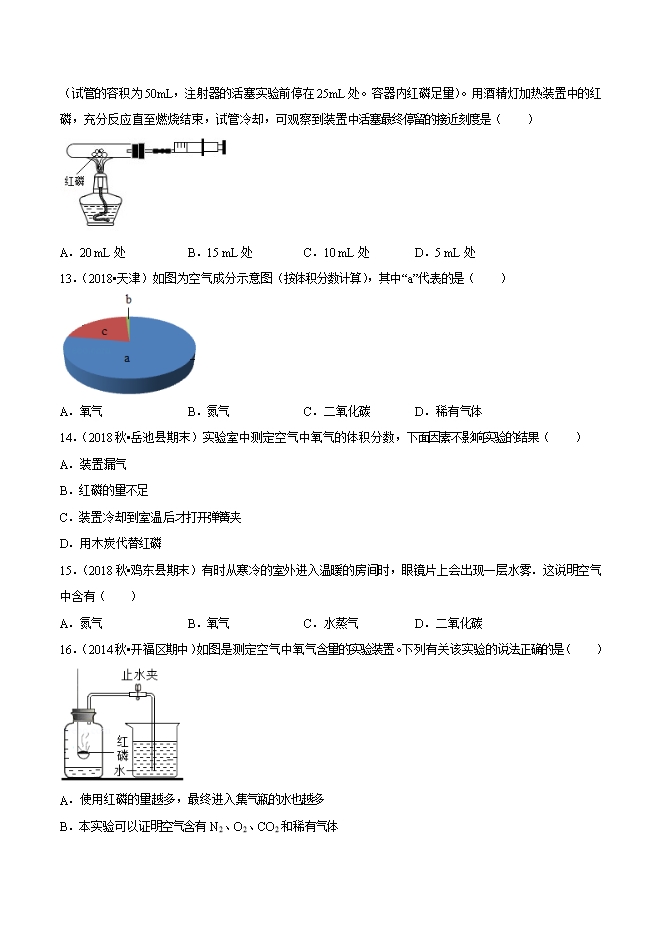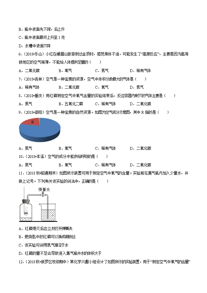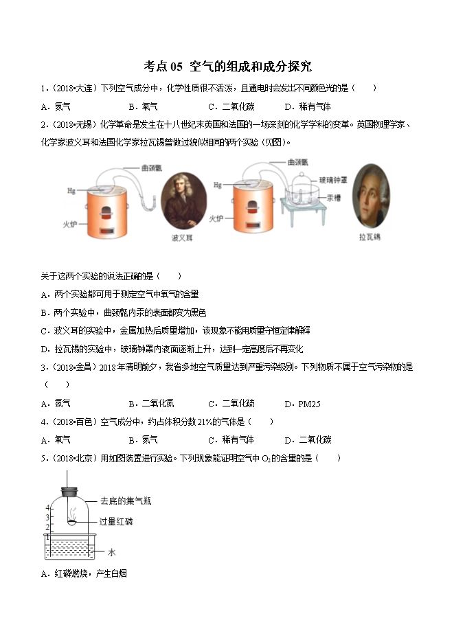 【内容简介】2019年中考九年级化学必刷题考点05 空气的组成和成分探究(原卷版)