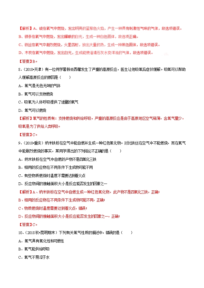 2019年中考九年级化学必刷题考点06 氧气的性质(解析版)