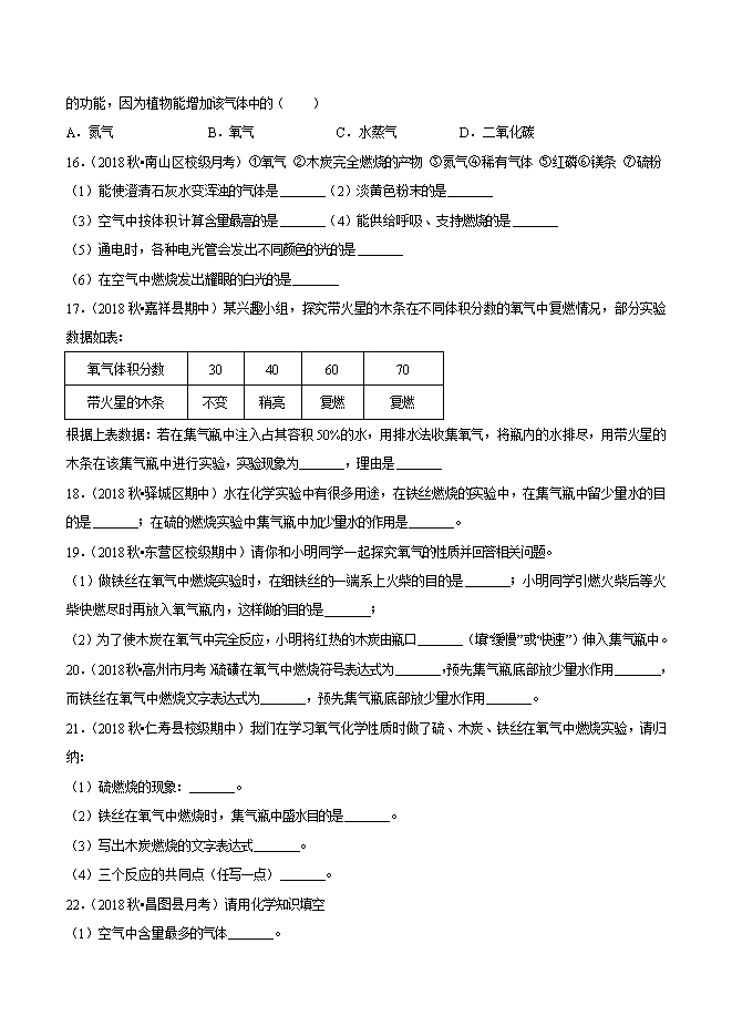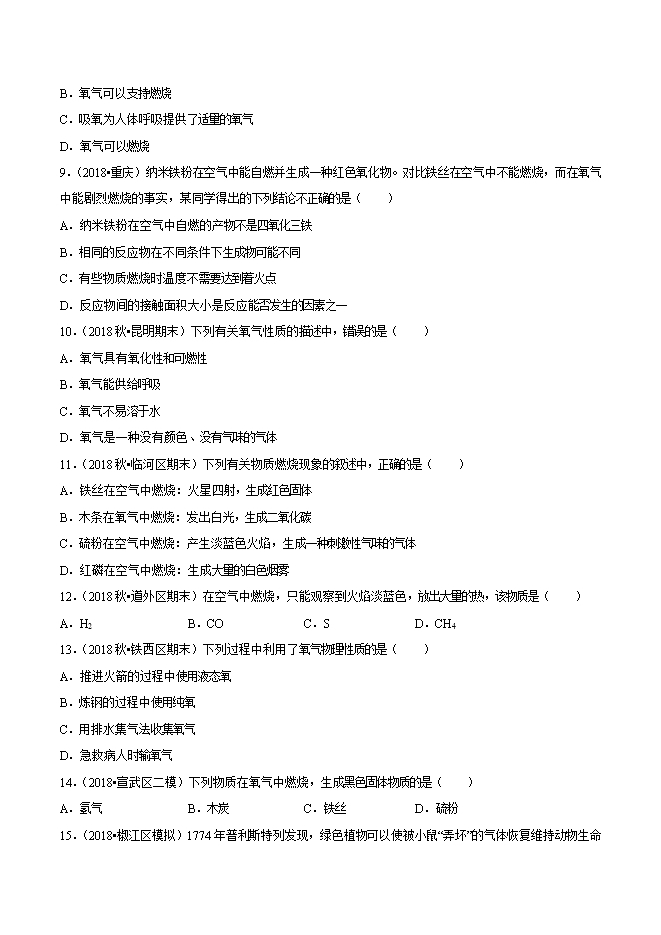 2019年中考九年级化学必刷题考点06 氧气的性质(原卷版)