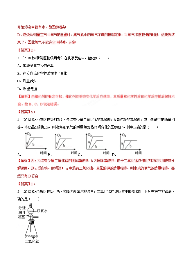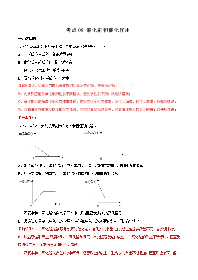 2019年中考九年级化学必刷题考点08 催化剂和催化作用(解析版)