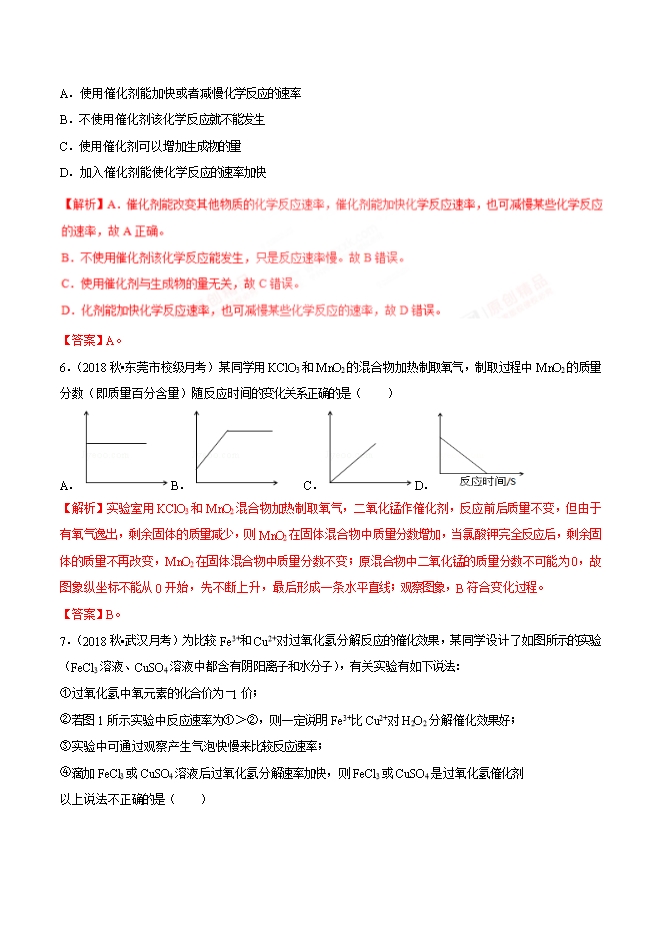 【内容简介】2019年中考九年级化学必刷题考点08 催化剂和催化作用(解析版)
