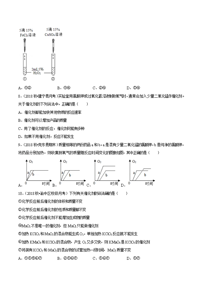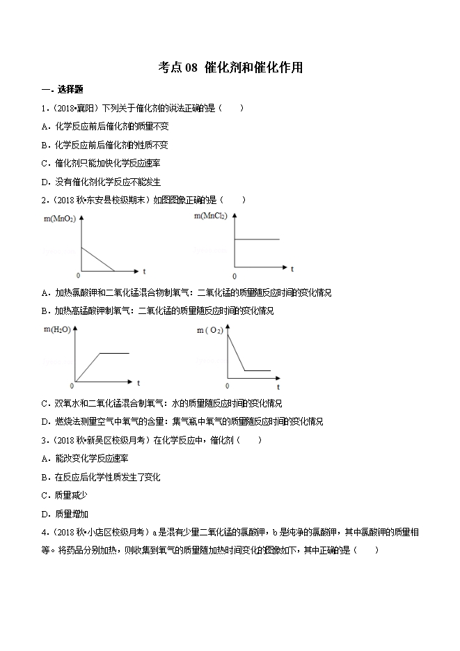【内容简介】2019年中考九年级化学必刷题考点08 催化剂和催化作用(原卷版)