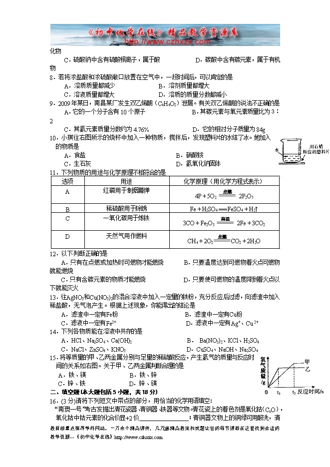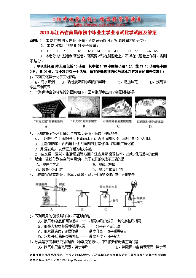 2010年江西省南昌市初中毕业生学业考试化学试题及答案