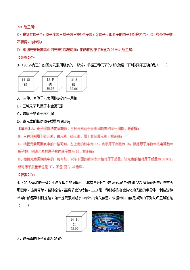 2019年中考九年级化学必刷题考点13 元素周期表及应用(解析版)