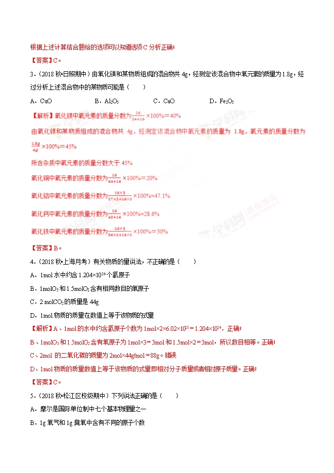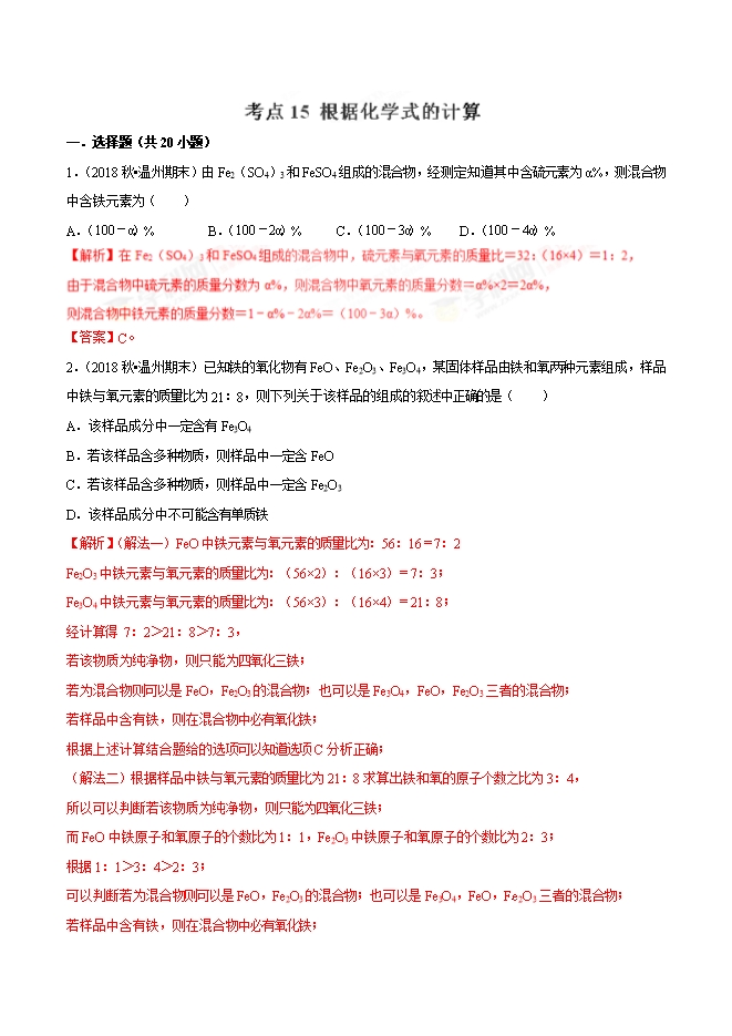 【内容简介】2019年中考九年级化学必刷题考点15 根据化学式的计算(解析版)