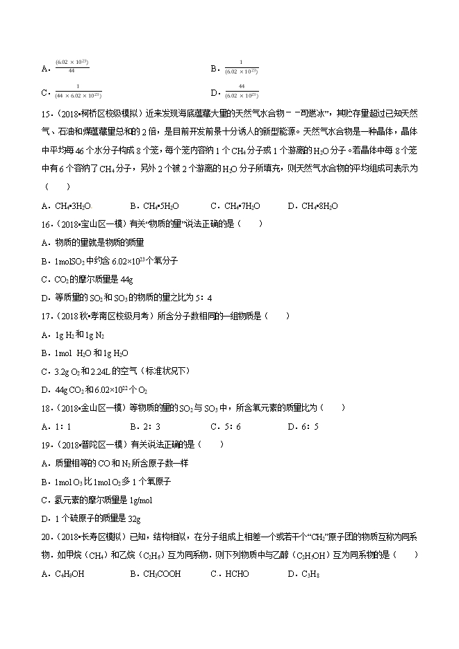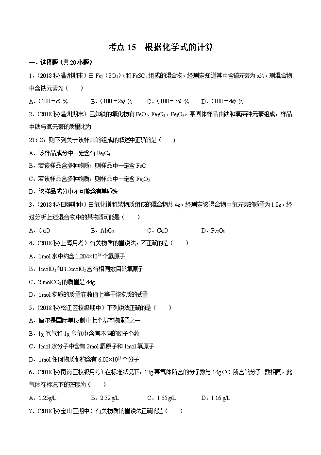 【内容简介】2019年中考九年级化学必刷题考点15 根据化学式的计算(原卷版)
