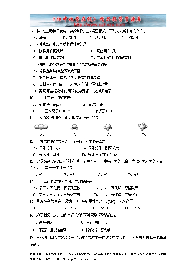 - 上一份试卷:2010年随州市初中毕业生学业考试化学试题及答案