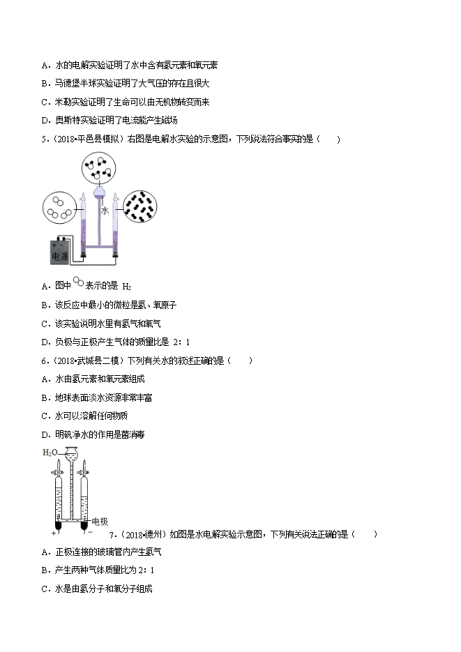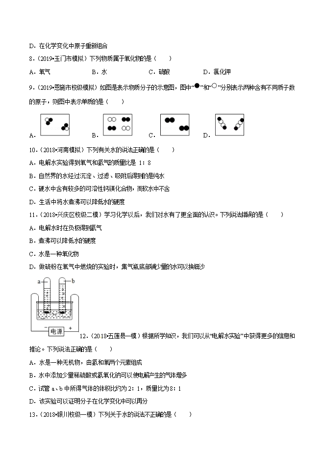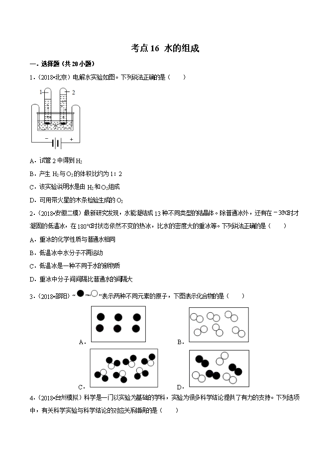 【内容简介】2019年中考九年级化学必刷题考点16 水的组成(原卷版)
