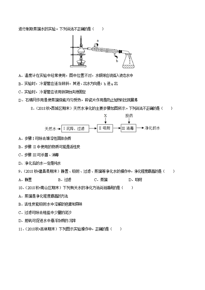 2019年中考九年级化学必刷题考点17 水的净化(原卷版)