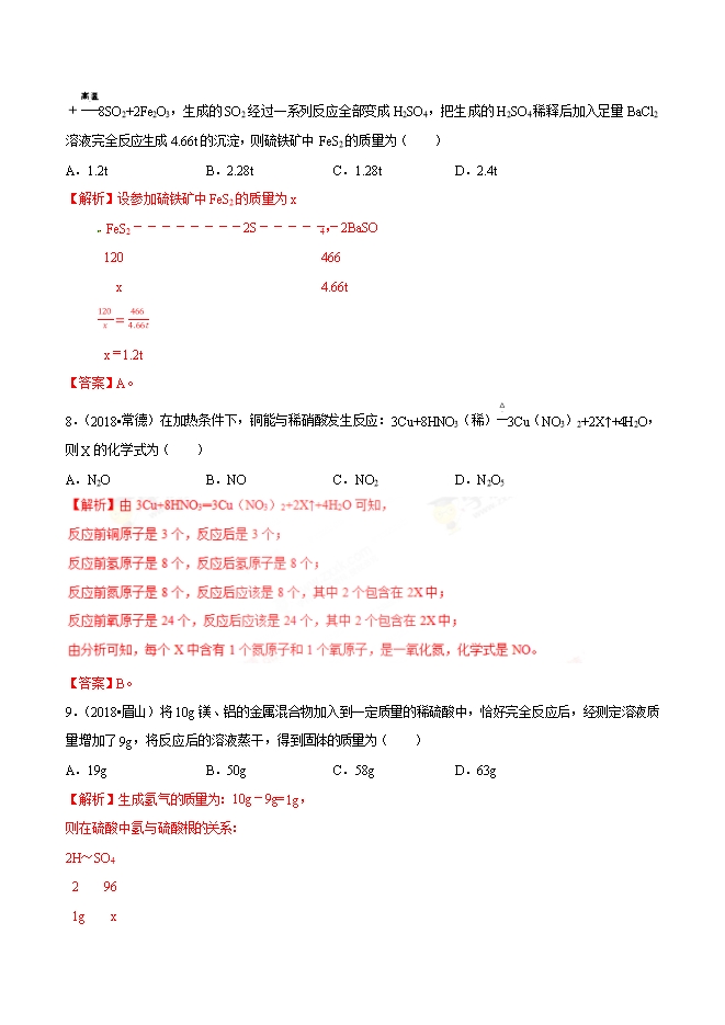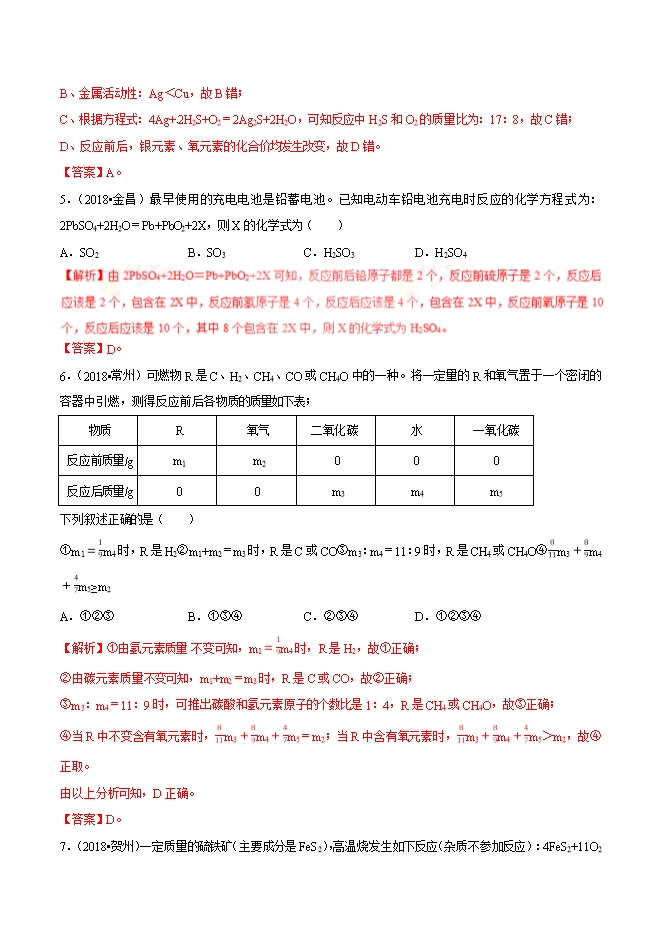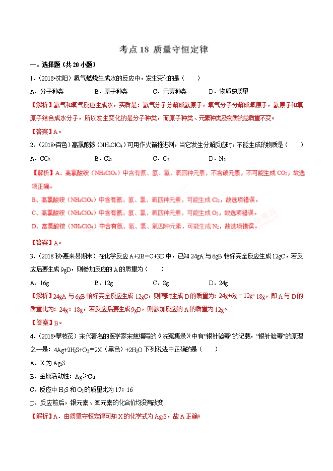 【内容简介】2019年中考九年级化学必刷题考点18 质量守恒定律(解析版)