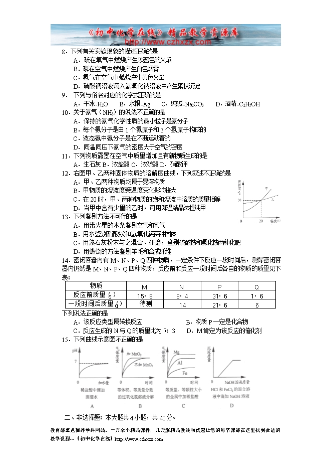 - 下一份试卷:2010年徐州市初中毕业生学业考试化学试题及答案