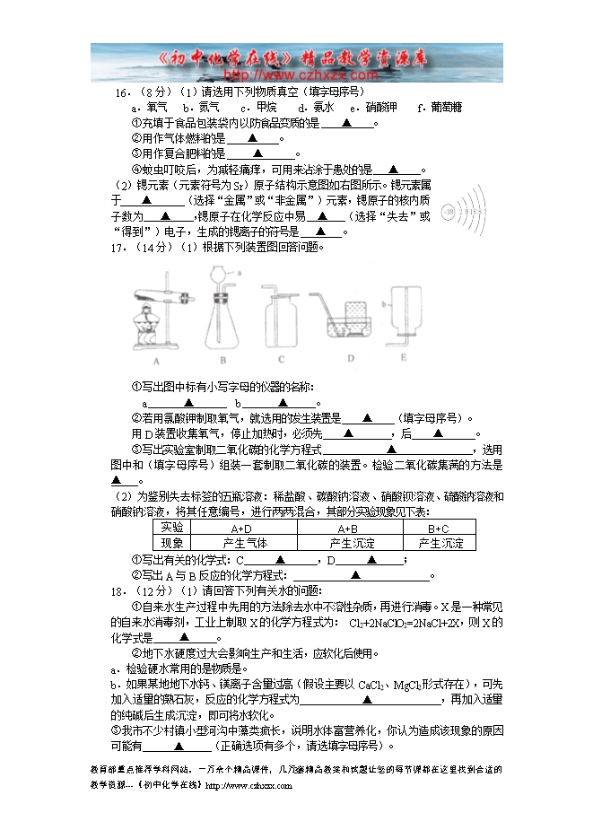 - 上一份试卷:2010年扬州市初中毕业生学业考试化学试题及答案