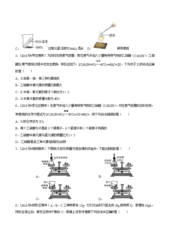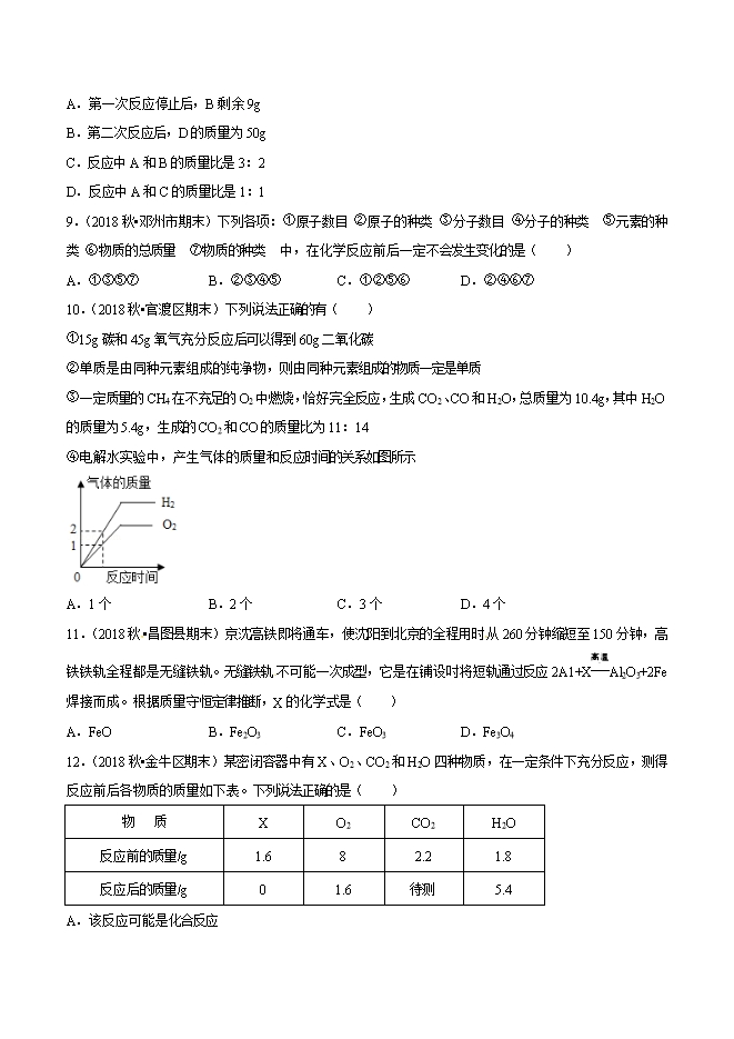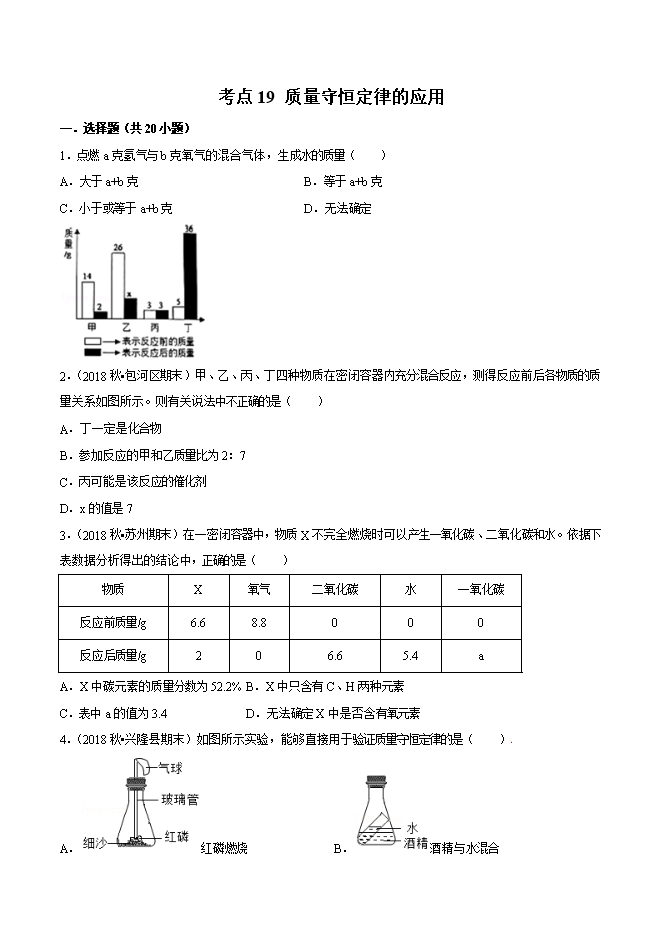 【内容简介】2019年中考九年级化学必刷题考点19 质量守恒定律的应用(原卷版)