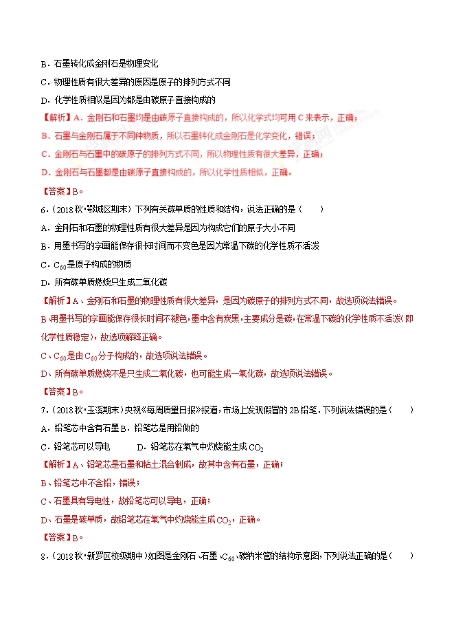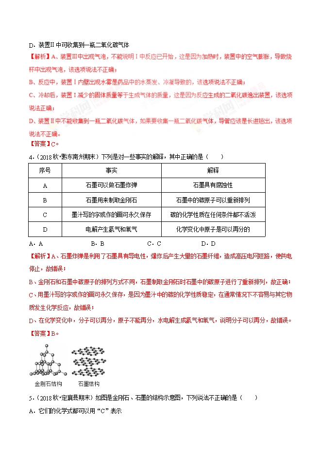 2019年中考九年级化学必刷题考点22 碳的单质(解析版)