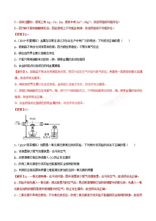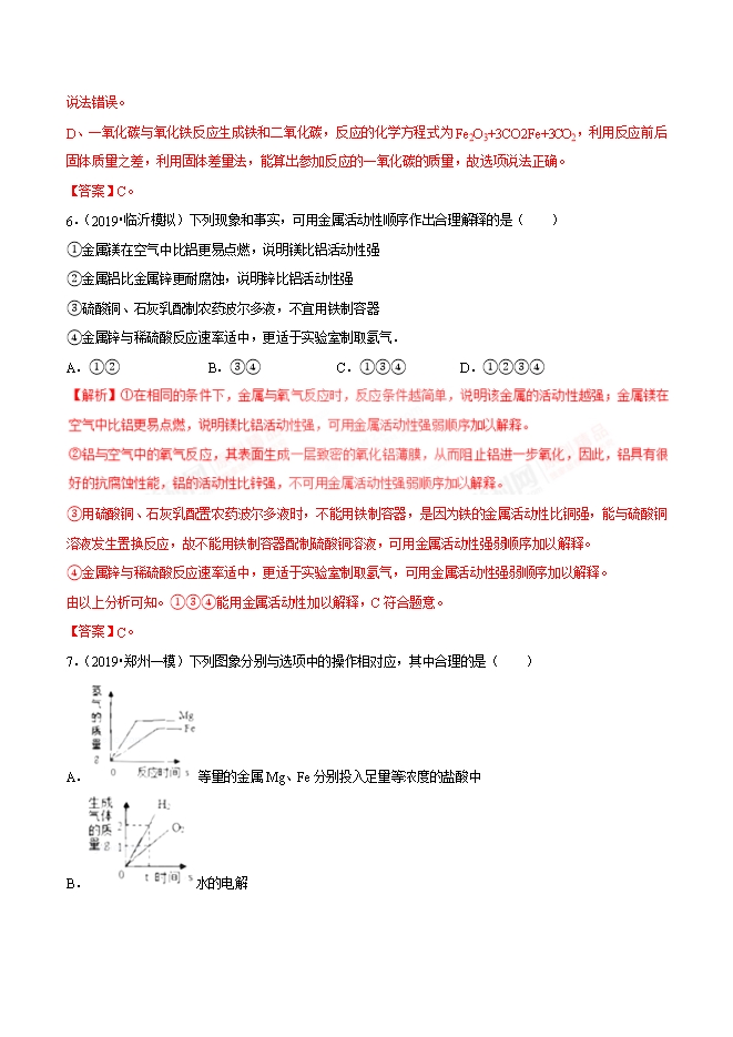 2019年中考九年级化学必刷题考点28 金属的化学性质和活动性(解析版)
