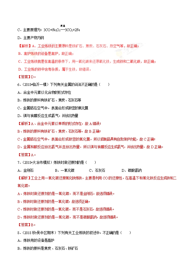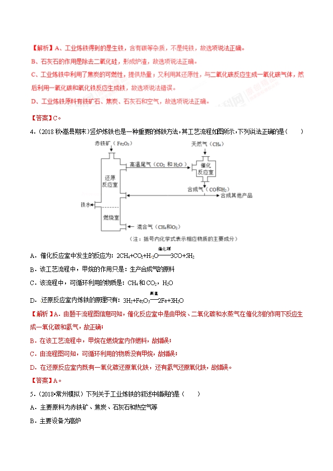 2019年中考九年级化学必刷题考点29 铁的冶炼(解析版)