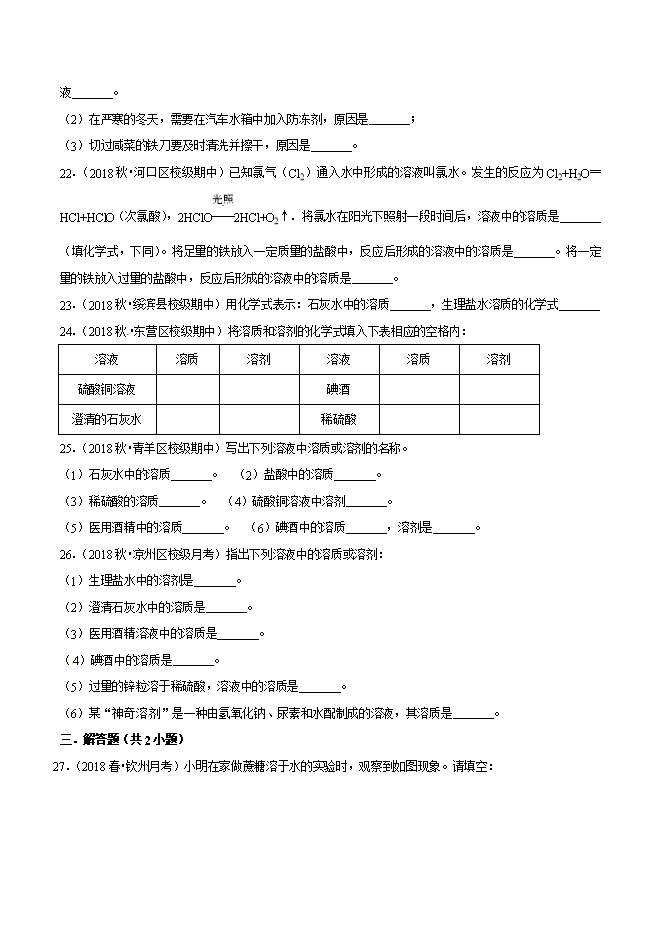 2019年中考九年级化学必刷题考点30 溶液(原卷版)