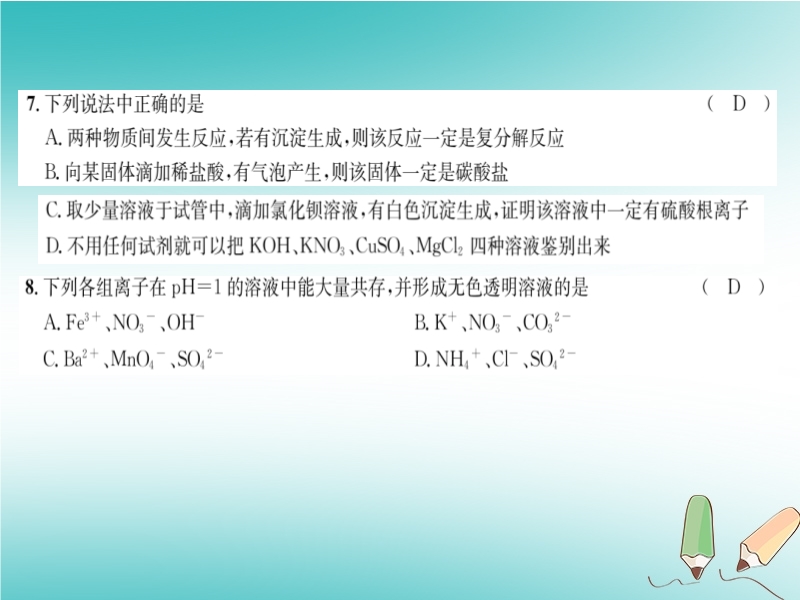 【内容简介】2019春沪教版九年级化学下册《第7章 应用广泛的酸碱盐》达标测试卷习题课件