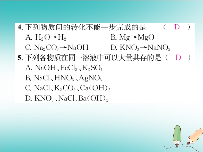 - 3632019春沪教版九年级化学下册《第7章 应用广泛的酸碱盐》达标测试卷习题课件
