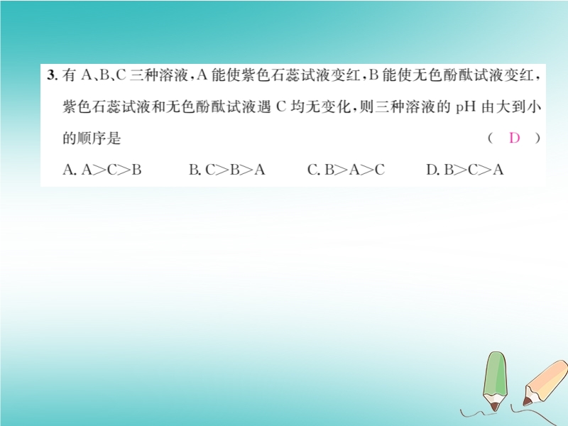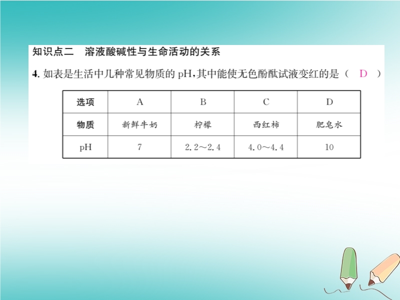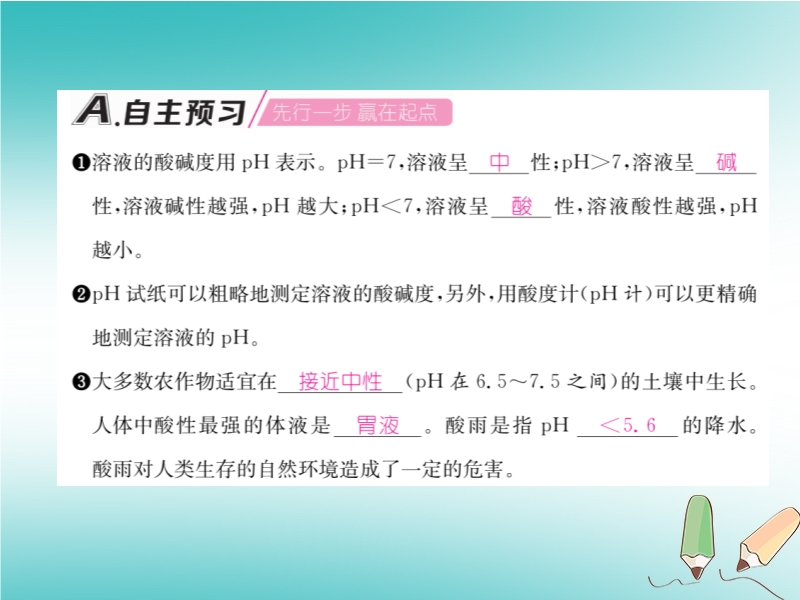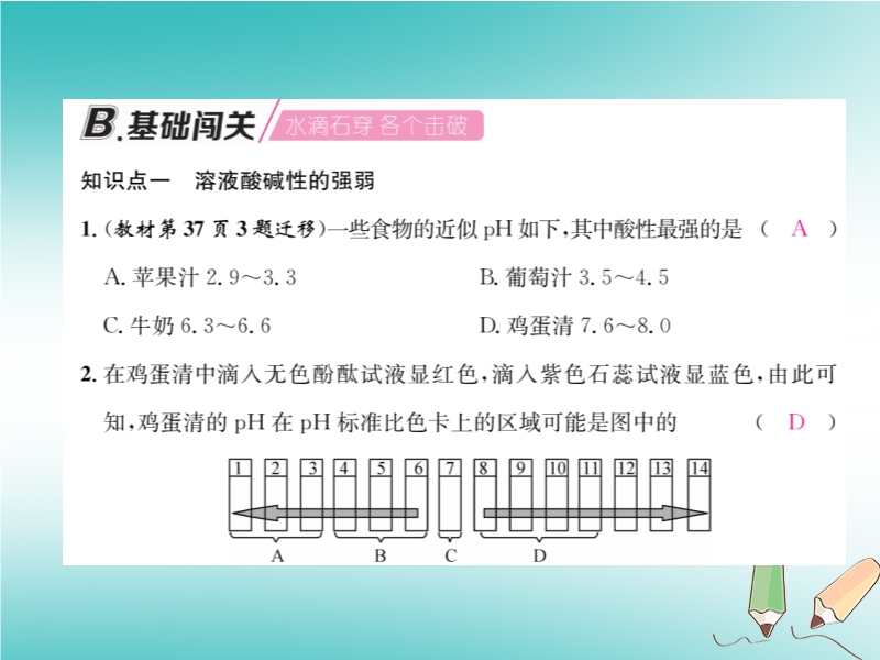 【内容简介】2019春沪教版九年级化学下册《第7章第1节 溶液的酸碱性(第2课时)》习题课件
