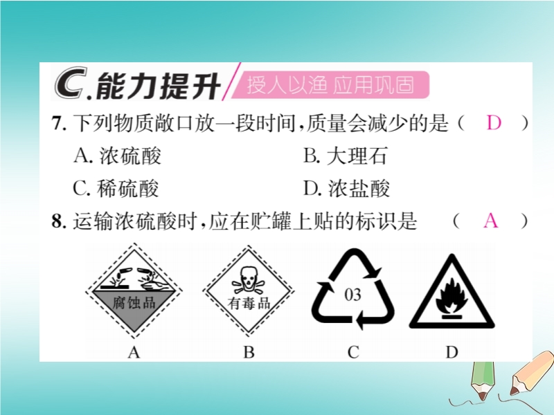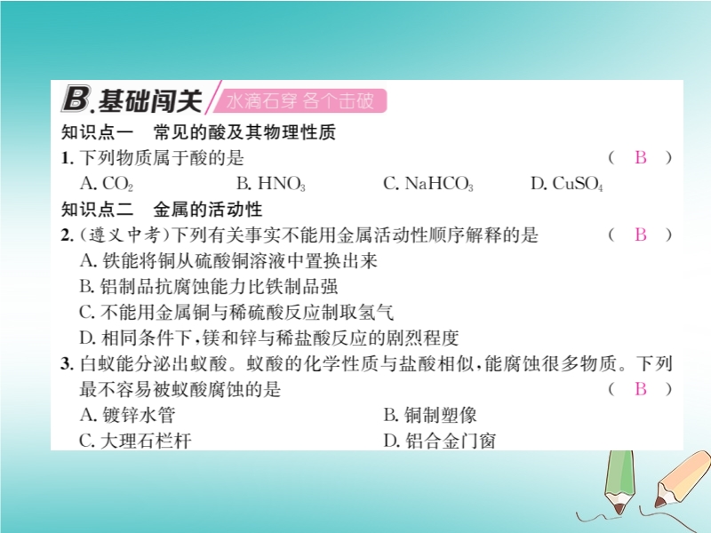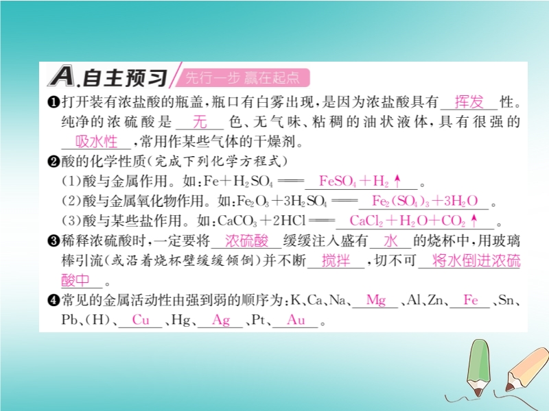 2019春沪教版九年级化学下册《第7章第2节 常见的酸和碱(第1课时)》习题课件