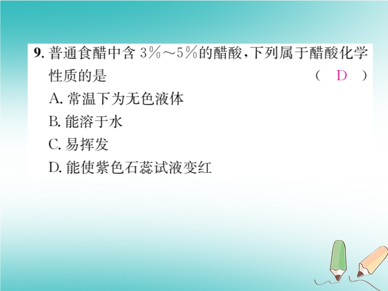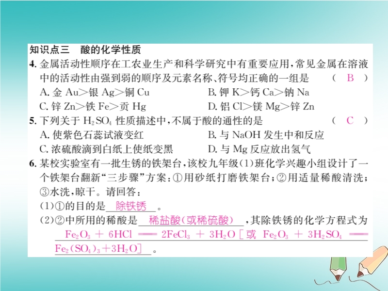 【内容简介】2019春沪教版九年级化学下册《第7章第2节 常见的酸和碱(第1课时)》习题课件