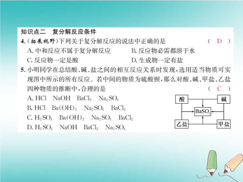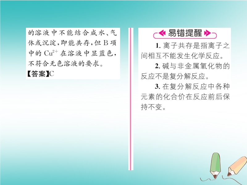 - 433沪教版九年级化学下册《7.3.2复分解反应的条件》教学课件