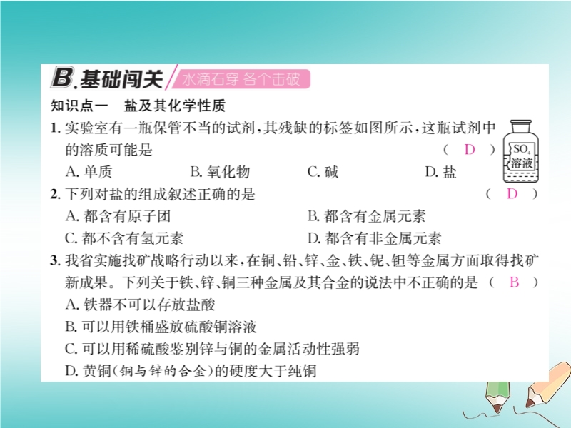 【内容简介】2019春沪教版九年级化学下册《第7章第3节 几种重要的盐(第1课时)》习题课件