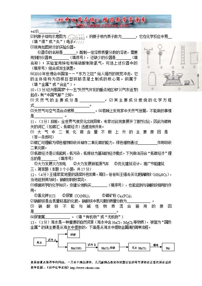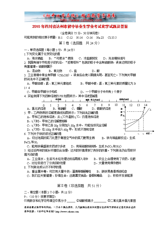 2010年四川省达州市初中毕业生学业考试化学试题及答案