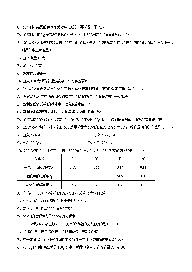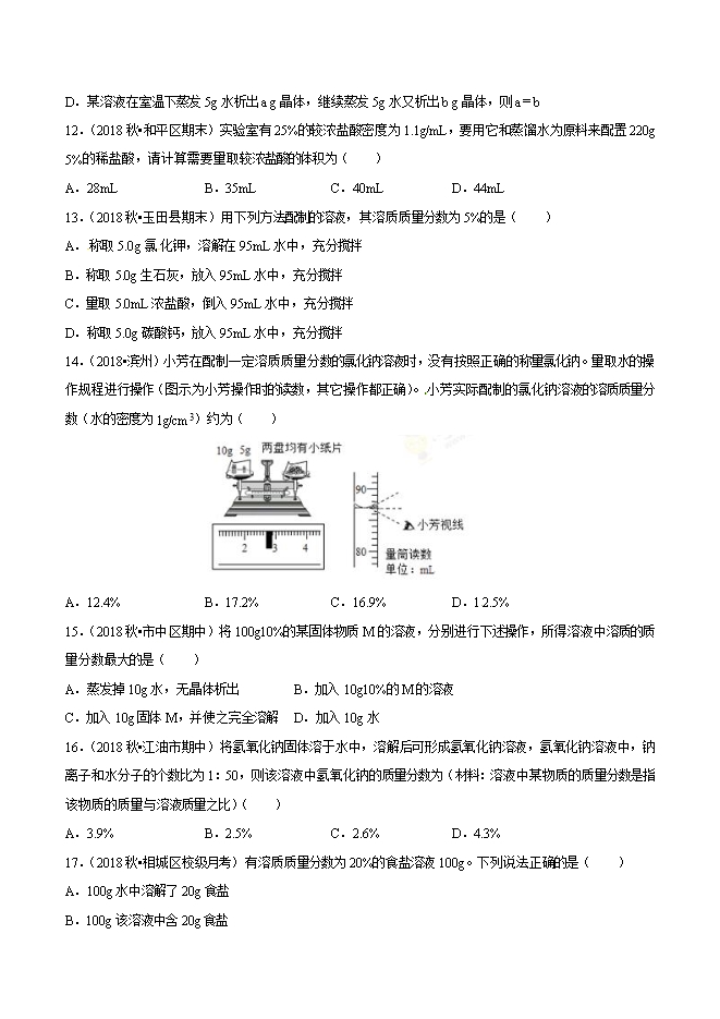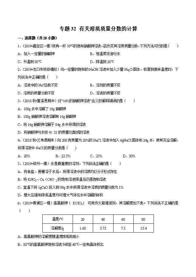 【内容简介】2019年中考九年级化学必刷题专题32 有关溶质质量分数的计算(原卷版)