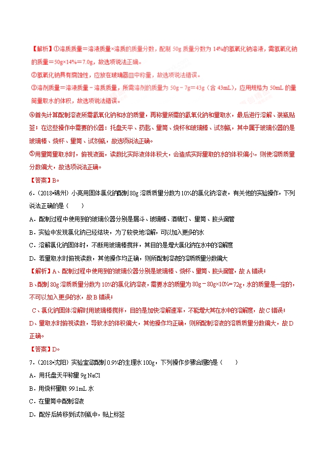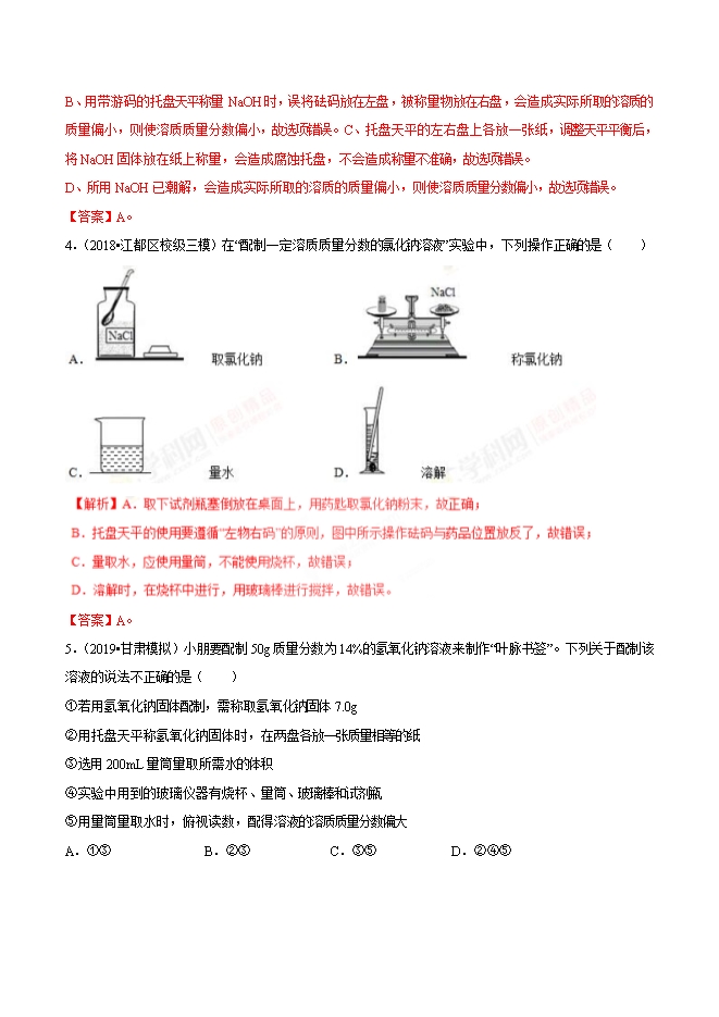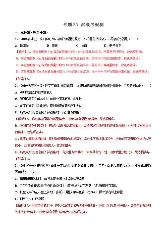 【内容简介】2019年中考九年级化学必刷题专题33 溶液的配制(解析版)