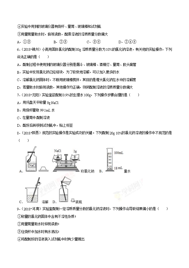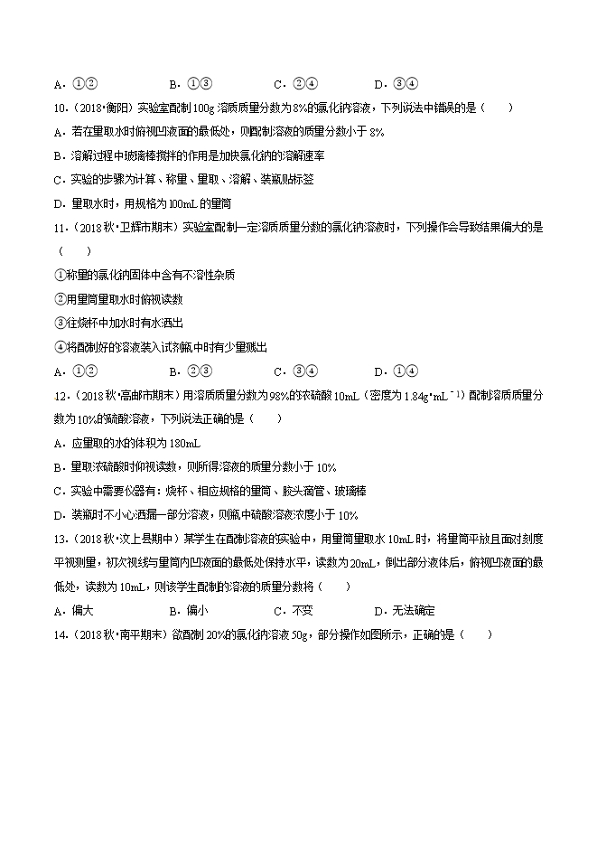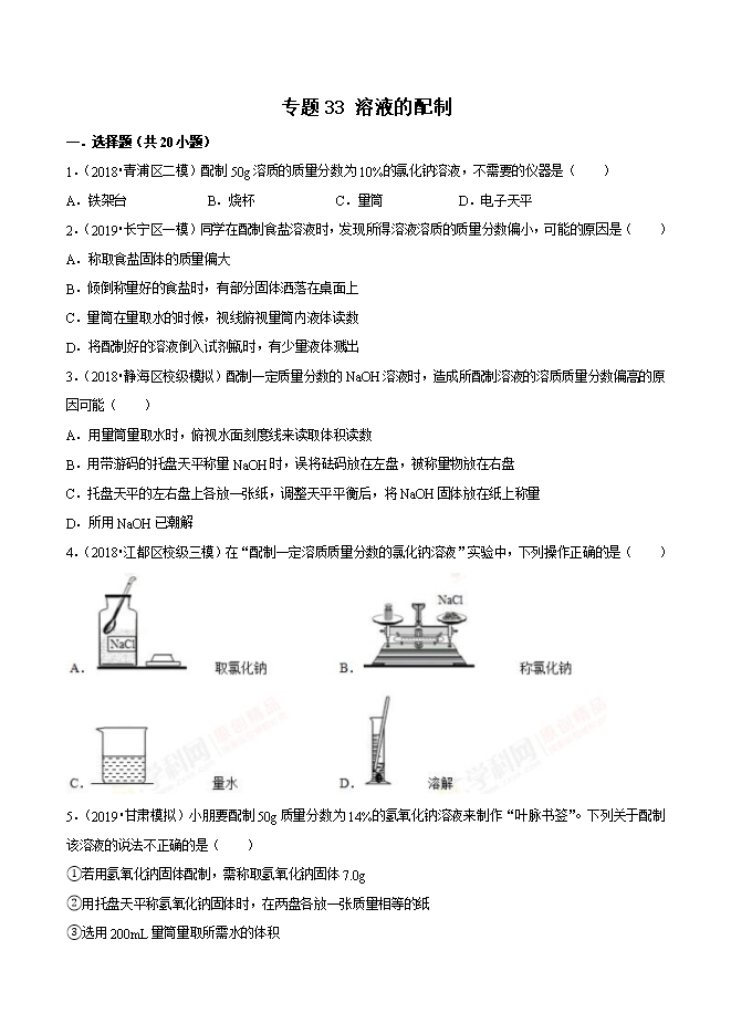 【内容简介】2019年中考九年级化学必刷题专题33 溶液的配制(原卷版)