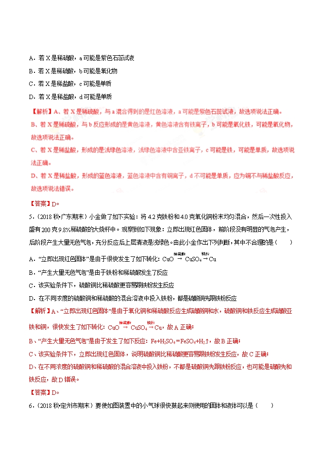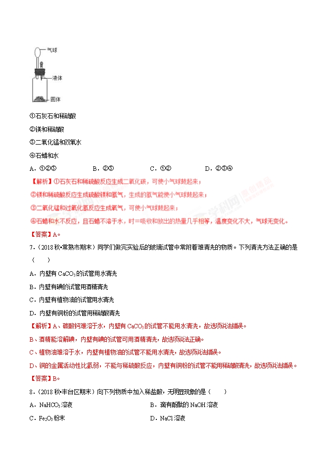2019年中考九年级化学必刷题专题35 酸的化学性质(解析版)