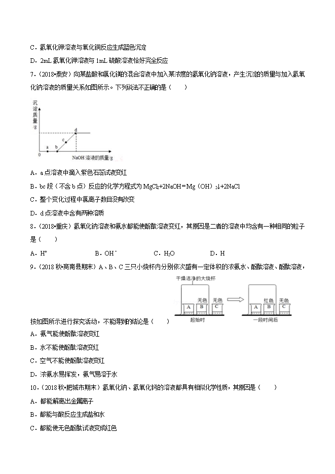 2019年中考九年级化学必刷题专题37 碱的化学性质(原卷版)