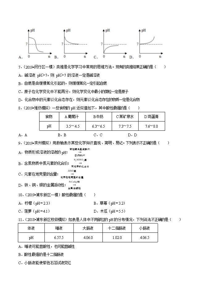 2019年中考九年级化学必刷题专题38 溶液的pH值(原卷版)