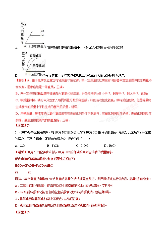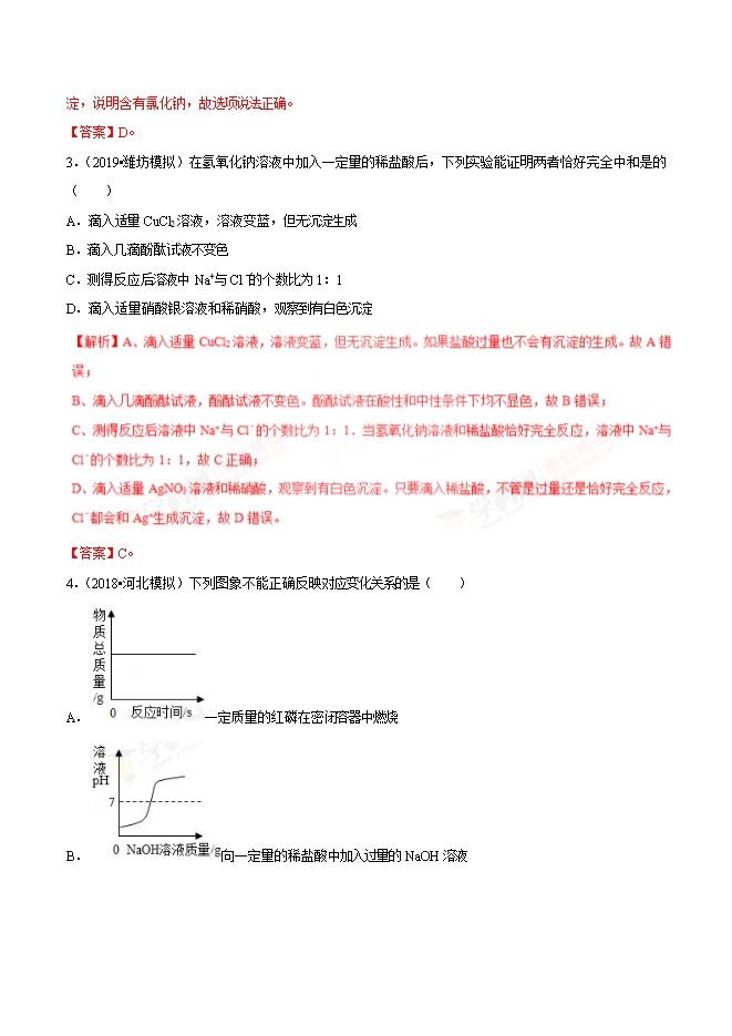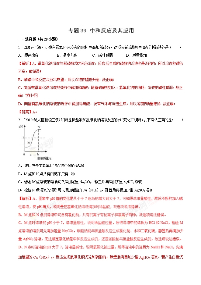 2019年中考九年级化学必刷题专题39 中和反应及其应用(解析版)