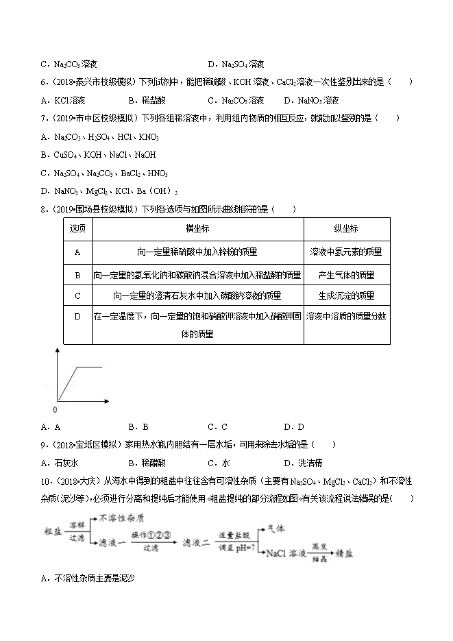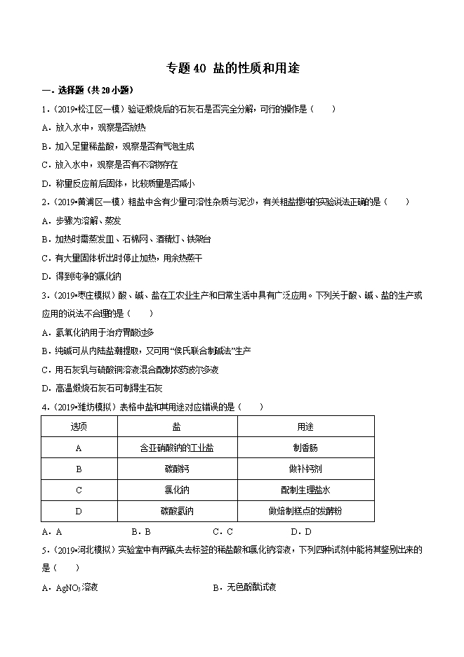 【内容简介】2019年中考九年级化学必刷题专题40 盐的性质和用途(原卷版)