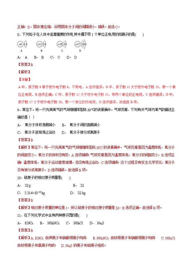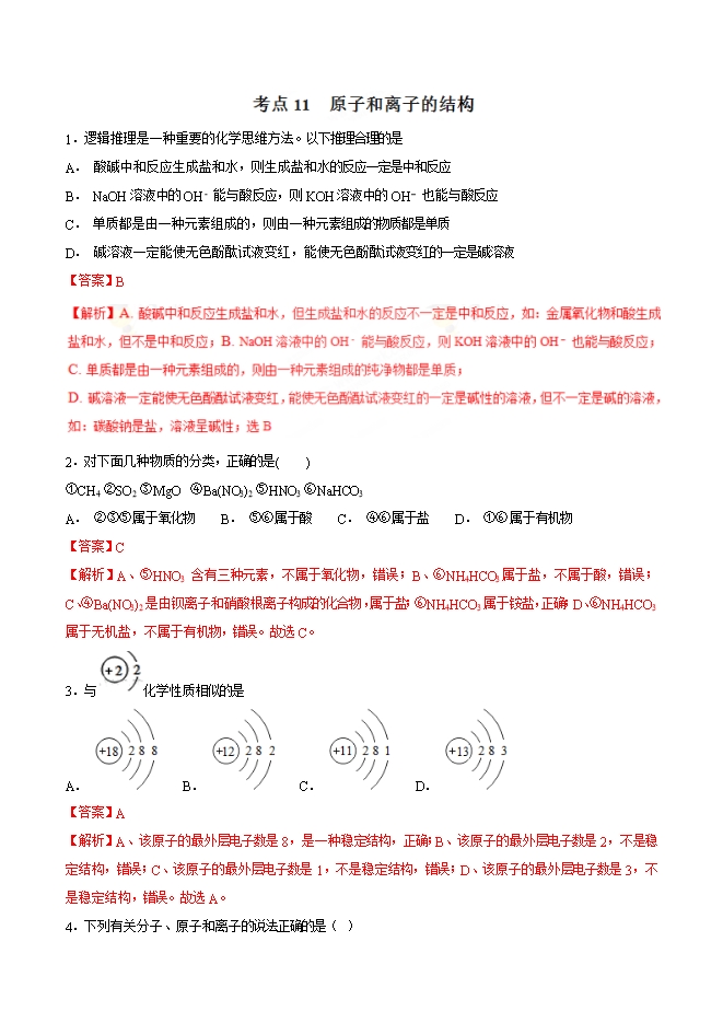 【内容简介】2019年九年级化学中考考点突破考点11 原子和离子的结构(解析版)