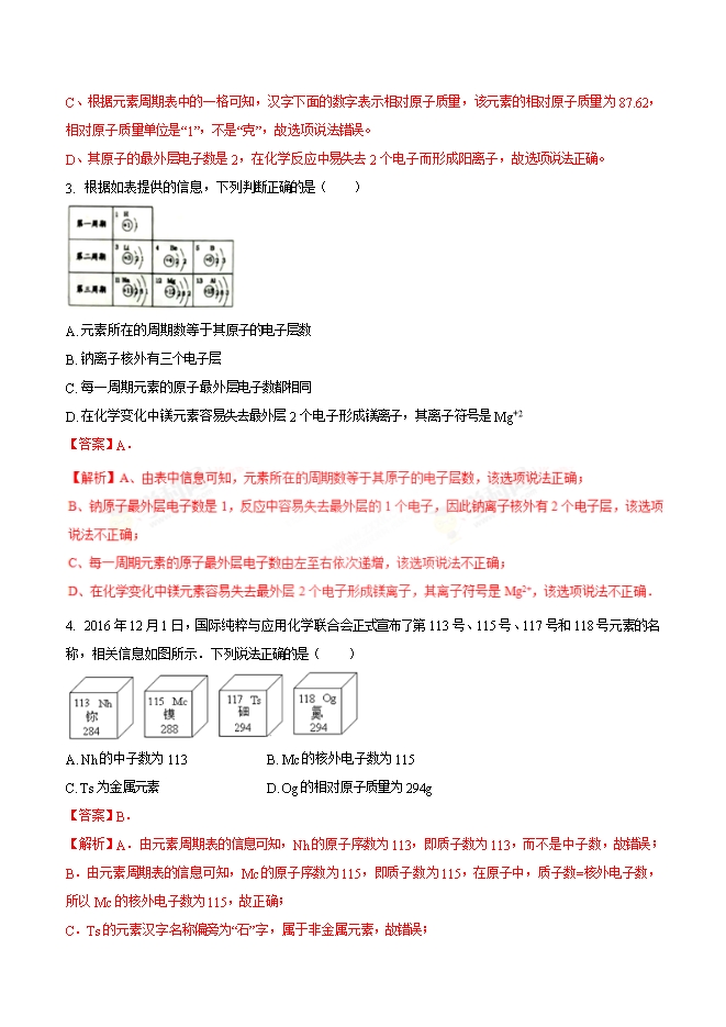 【内容简介】2019年九年级化学中考考点突破考点13 元素周期表(解析版)