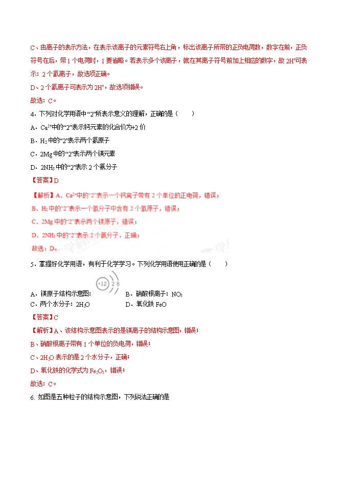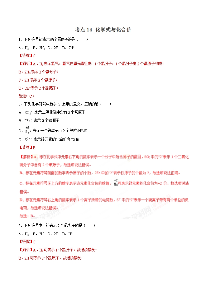 2019年九年级化学中考考点突破考点14 化学式与化合价(解析版)
