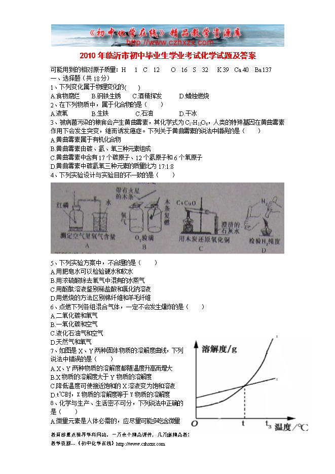 2010年临沂市初中毕业生学业考试化学试题及答案