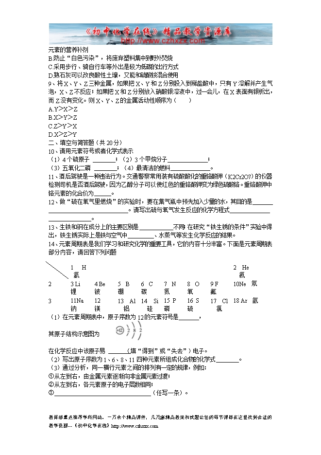 - 下一份试卷:2010年兰州市初中毕业生学业考试化学试题及答案
